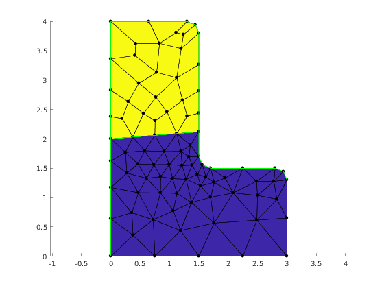 geom = mp.geoms.LShapeIfaceGeom('my_domain'); geom.params.dW = 3; geom.params.dH = 4; geom.params.dt = 1.5; % Relative placement of interface endpoints. geom.params.fA = 0.5; geom.params.fB = 0.2; % The mesh in the upper subdomain will consist of quad elements. geom.params.quads = [0, 1];