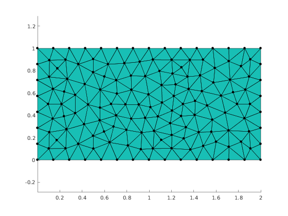 clear variables; mp_setup_gmsh() meshingParams = struct('basename','rect','folder','.','dim',2); gmshgeom = mp_geom_rectangle([0,0], [2,1], struct('lc', 0.15)); [nodes, elements] = mp_gmsh_generate(gmshgeom, meshingParams);