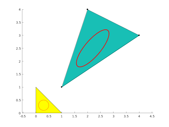 viewer = mp.Viewer(); viewer.show(mesh); hold on info = mp_gmsh_types_info(mesh.cellTypes()) nodes = info.nodes fill(nodes(:,1), nodes(:,2), 'yellow'); t = linspace(0, 2*pi, 36); cx = 0.3; cy = 0.3; R = 0.2; refPts = [R*cos(t)'+cx,R*sin(t)'+cy, 0*t']; realPts = zeros(36,3); for i=1:36 realPts(i,:) = mesh.geomTrans.transform(refPts(i, :), 1); end line(realPts(:,1), realPts(:,2), 'LineWidth', 2, 'Color', 'red') line(refPts(:,1), refPts(:,2), 'Color', 'red') % Report demo status mp_manage_demos('report', 'mp_map_circle', true);